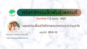 คริสตจักรเมล็ดพันธุ์เพชรบุรี รอบนมัสการวันอาทิตย์ ที่ 2 มีนาคม 2025 เทศนาเรื่อง “แผนงานเพื่อสวัสดิภาพอนาคตและความหวัง”